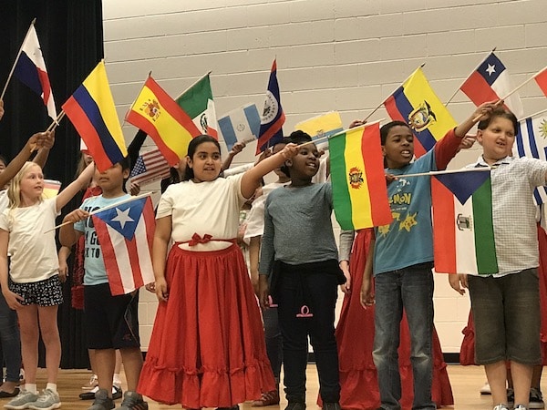 Con la organización del Departamento de Idiomas de la escuela, los niños desde el kínder hasta el quinto grado cantaron y declamaron en español y en mandarín. También hubo diversas prestaciones de danza.