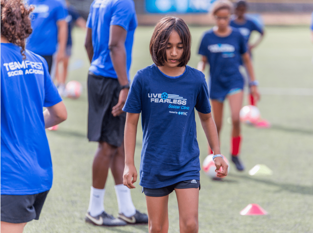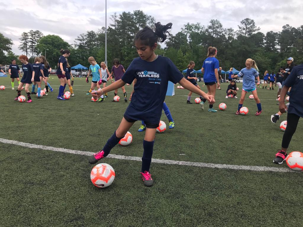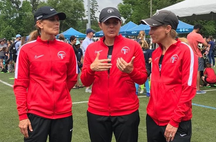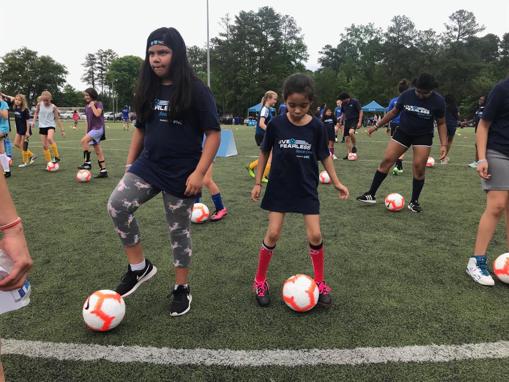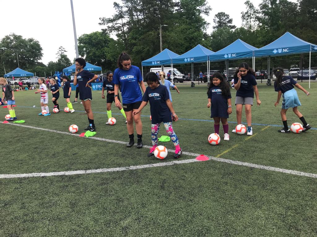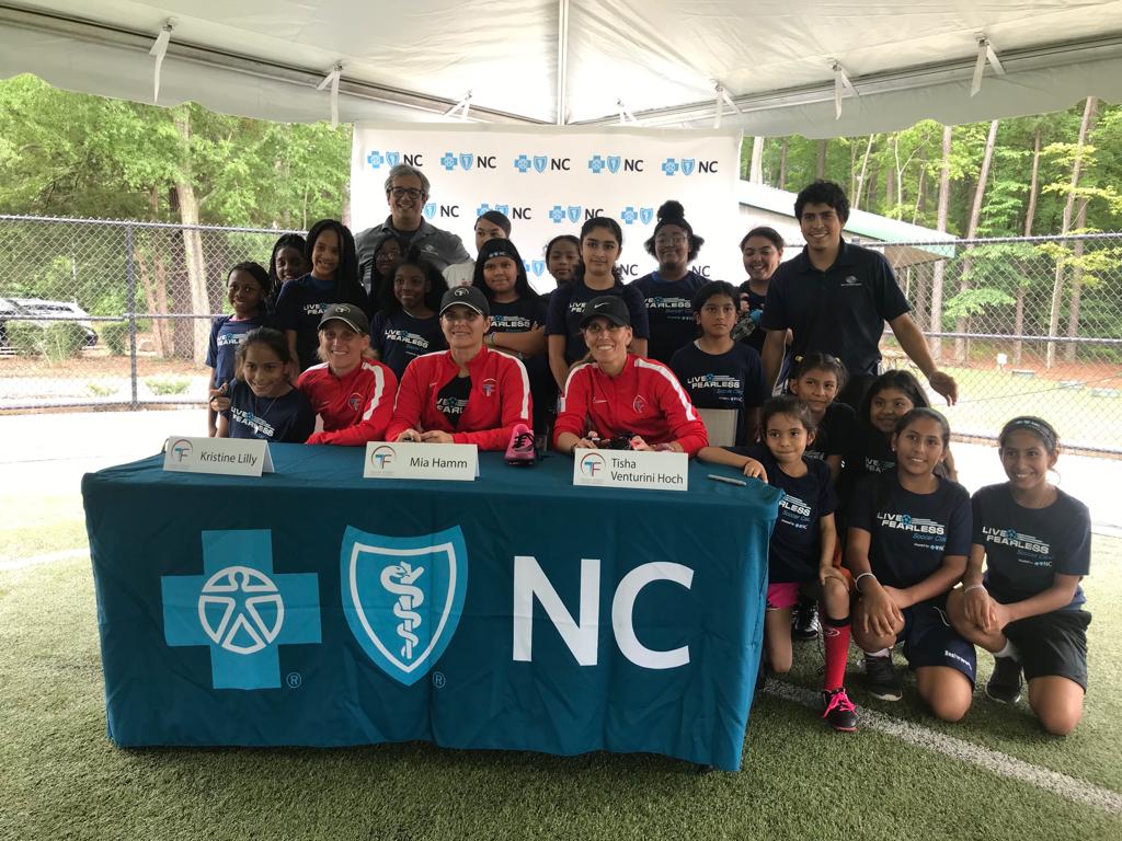 Las Campeonas de la Copa del Mundo, medallistas de oro olímpicas y fundadoras de la Team First Soccer Academy: Mia Hamm, Kristine Lilly y Tisha Venturini Hoch, en colaboración con Blue Cross y Blue Shield de Carolina del Norte organizaron en Chapel Hill, la clínica de fútbol Live Fearless