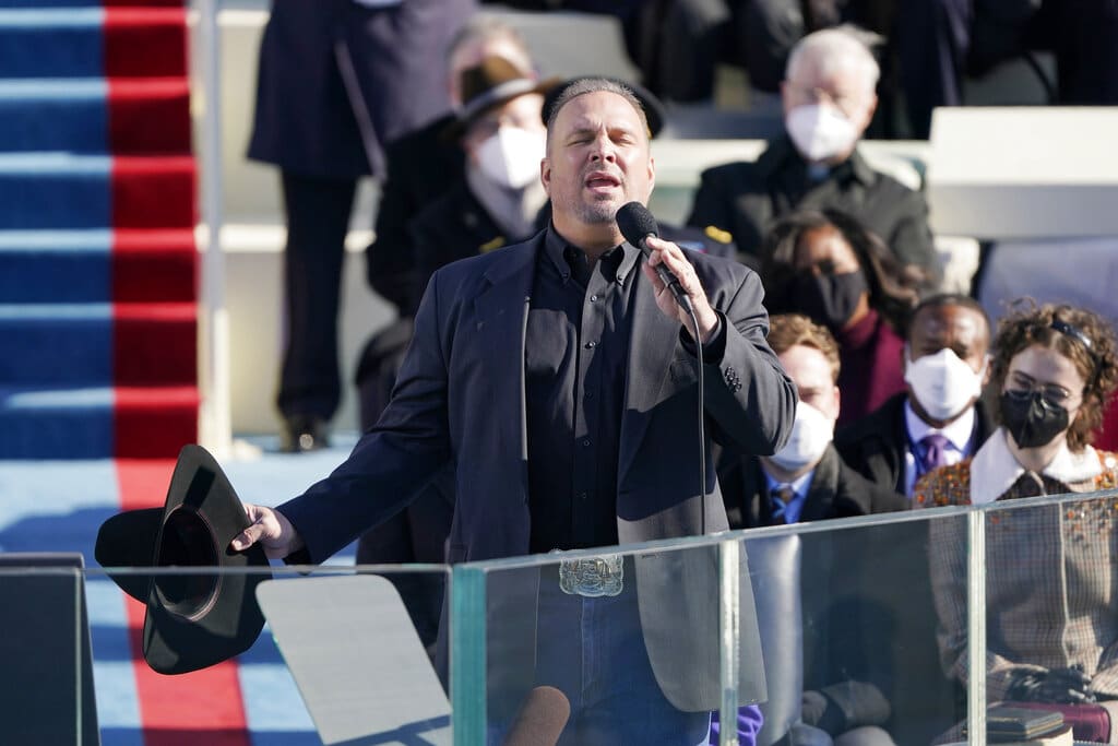 Garth Brooks canta "Amazing Grace" durante la ceremonia de investidura del presidente Joe Biden, frente al Capitolio en Washington, el miércoles 20 de enero del 2021. (AP Foto/Patrick Semansky, Pool)