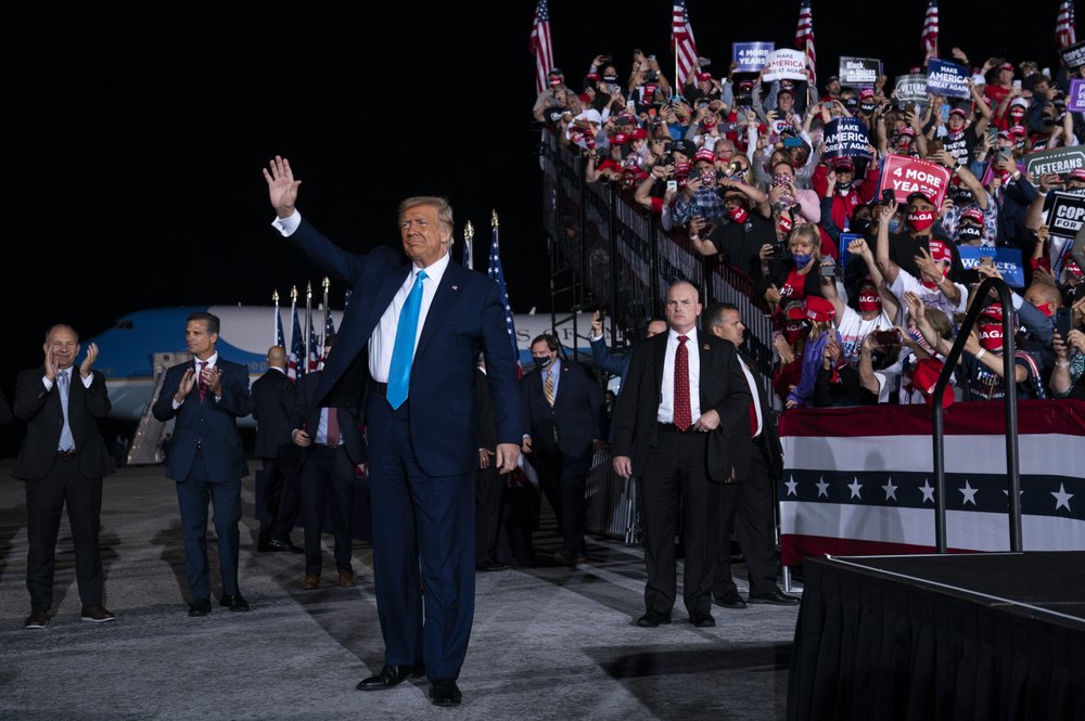 El presidente Donald Trump habla durante una manifestación de campaña en el Aeropuerto Internacional de Harrisburg, el sábado 26 de septiembre de 2020, en Middletown, Pensilvania (AP Photo / Steve Ruark)