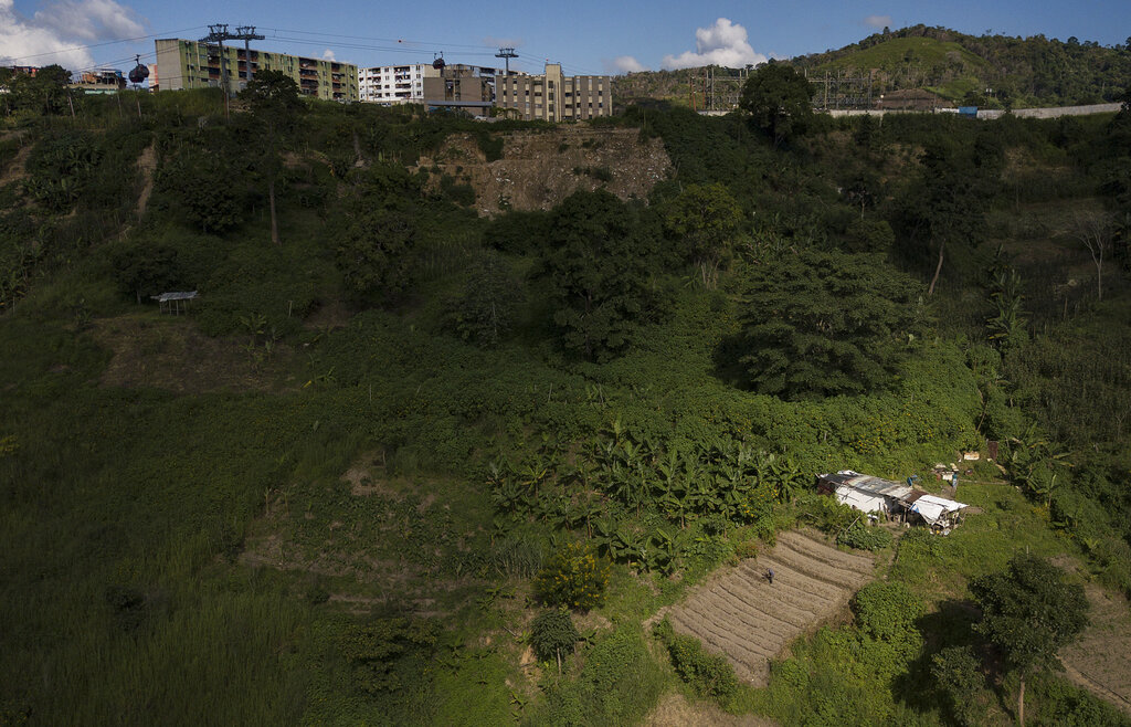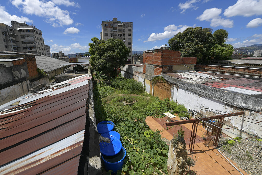 Frutas y verduras crecen el domingo 13 de septiembre de 2020 en una propiedad abandonada en el vecindario La Pastora, en Caracas, Venezuela. (AP Foto/Matías Delacroix)