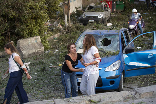 Personas heridas reaccionan tras una enorme explosión en Beirut, Líbano. (AP Foto/Hassan Ammar)