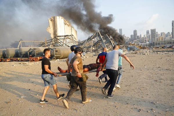 Las fotos de la explosión en Beirut muestran a decenas de personas atendiendo a heridos, así como la destrucción dejada por la detonación, SE RECOMIENDA DISCRECIÓN.