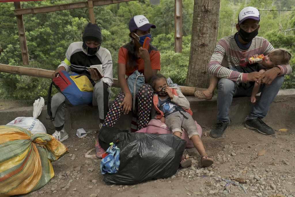 Migrantes venezolanos descansan en su camino a pie desde la frontera de su país a Pamplona, Colombia, el 7 de octubre de 2020. Funcionarios migratorios de Colombia esperan que 200.000 venezolanos ingresen al país en los próximos meses atraídos por la posibilidad de tener un salario mejor y poder enviar dinero a su país para alimentar a sus familias. (AP Foto/Ferley Ospina)