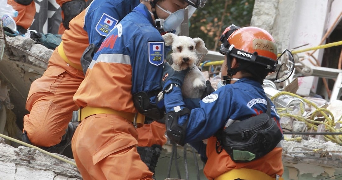 Disfruta de las fotos más conmovedoras de perros durante terremotos.