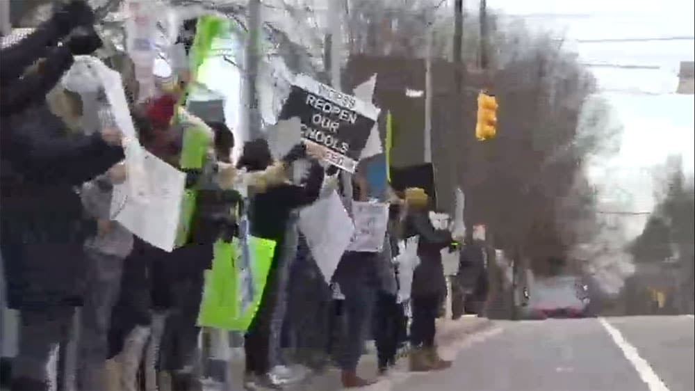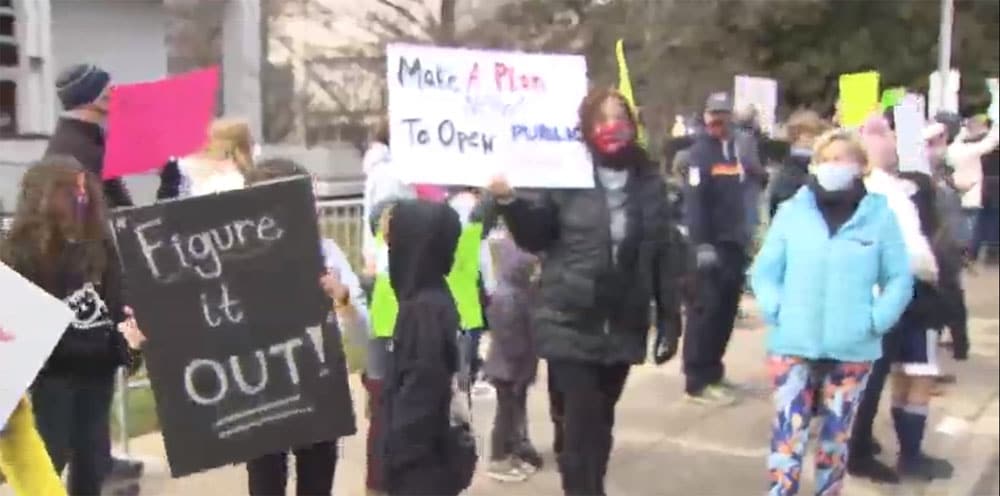 WRAL informó que padres y estudiantes protestaron el 30 de enero frente a la mansión del gobernador de Carolina del Norte, Roy Cooper, pidiendo el reinicio de clases presenciales en la entidad.