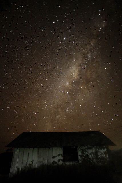Una vista de la Capilla de San Benito con el telón de fondo de un cielo nocturno iluminado por las estrellas en la Reserva Indígena Alto Río Guama, cerca de Paragominas, Brasil, el lunes 7 de septiembre de 2020 (Foto AP / Eraldo Peres).