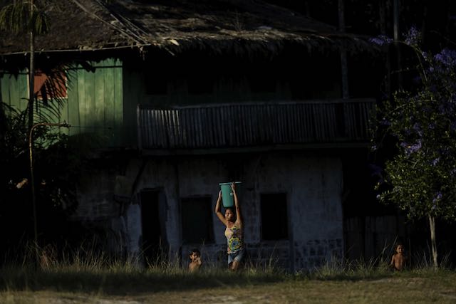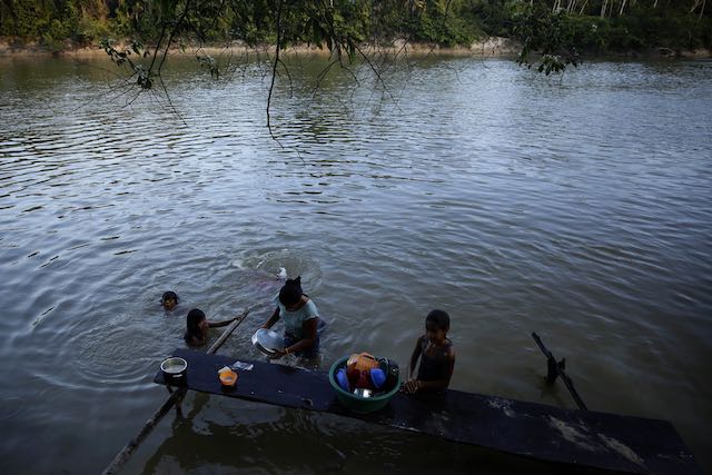 Una madre indígena Tenetehara lava sus ollas a orillas del río Gurupi, en el territorio indígena Alto Río Guama, cerca de Paragominas, estado de Pará, región norte de Brasil, el lunes 7 de septiembre de 2020 (AP Photo / Eraldo Peres)