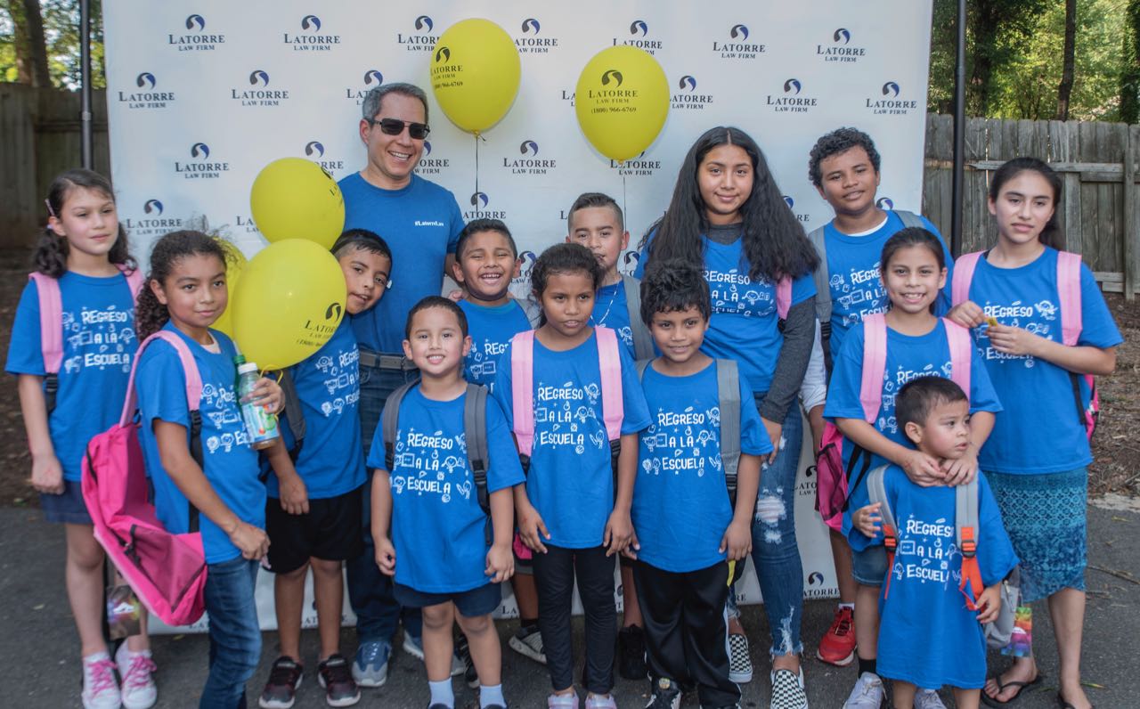 Estuvo muy concurrida la sexta Feria de Regreso a la Escuela que organizó Latorre Law Firm, este donde se entregaron alrededor de 1,500 hermosas mochilas con material de estudios en su interior, así como camisetas para todos, refrescos y helados, que fueron recibidos por niñas y niños desde los 6 años hasta los 13 años inclusive.