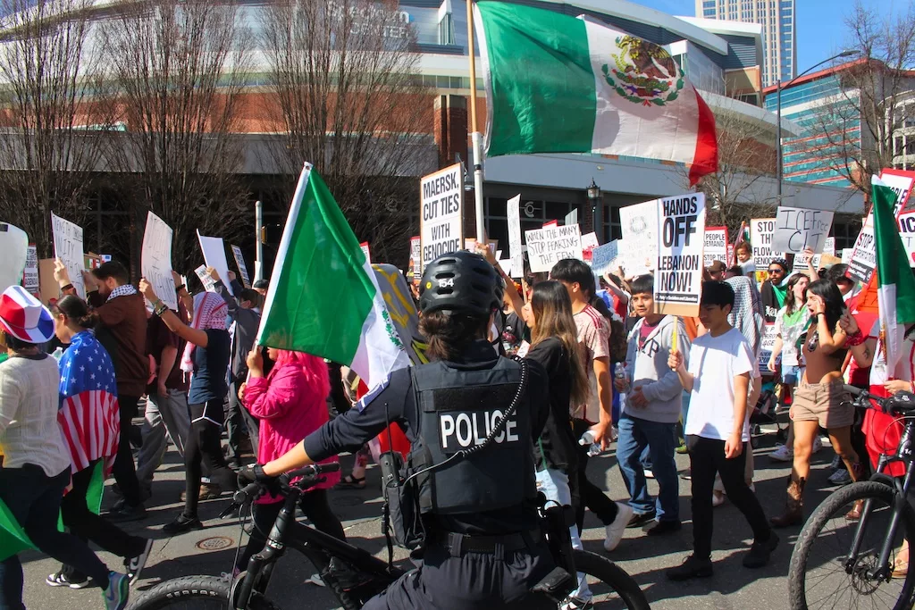 Además de la causa inmigrante, los manifestantes se pronunciaron en contra de la idea del presidente Trump de que Estados Unidos ocuparía la Franja de Gaza, en el contexto de la guerra ente Israel y el grupo Hamás en Palestina.