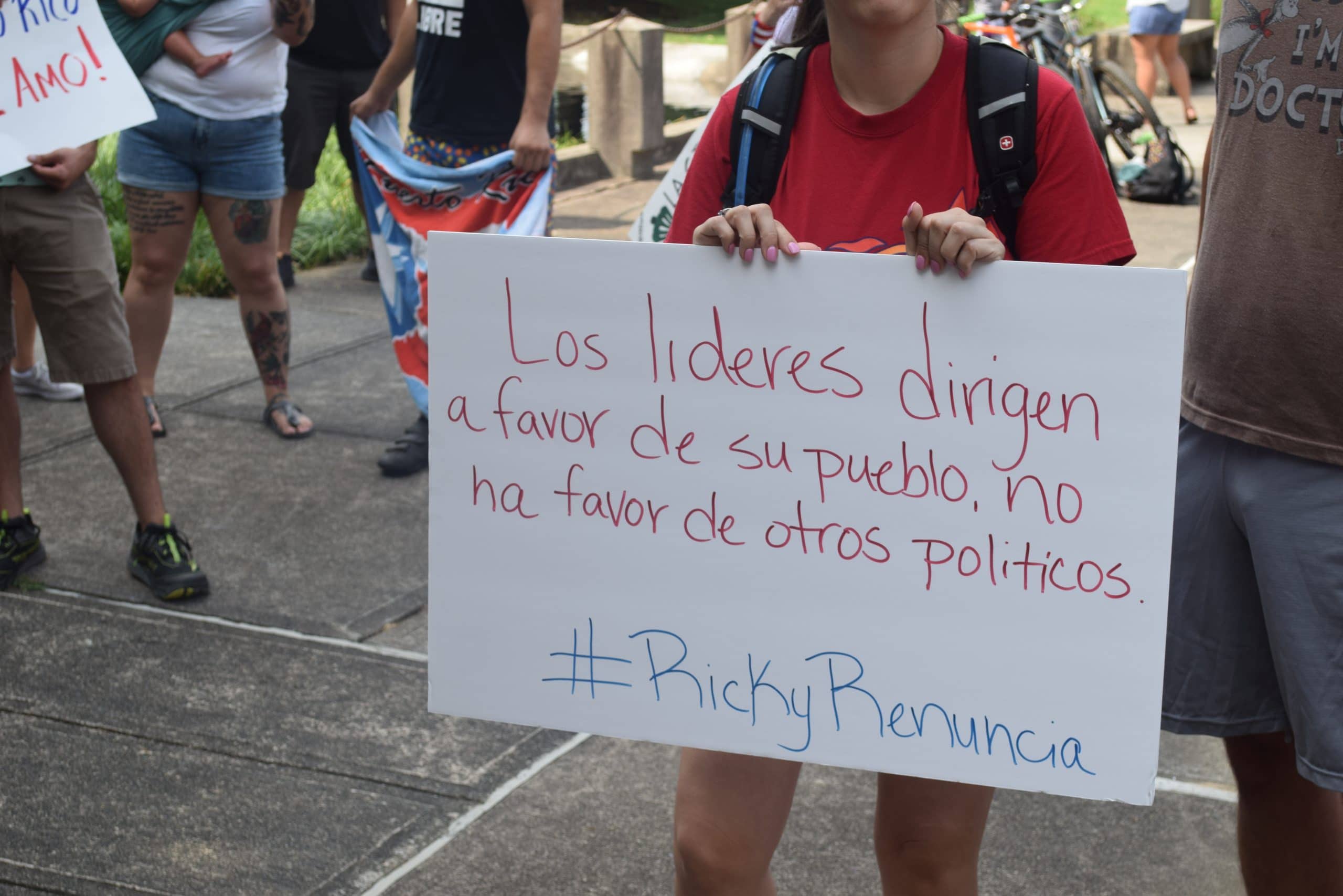 El evento comenzó con varios oradores quienes hablaron sobre la situación en Puerto Rico. Los manifestantes después dieron una vuelta alrededor del parque con banderas, carteles gritando: ¡Ricky renuncia!
