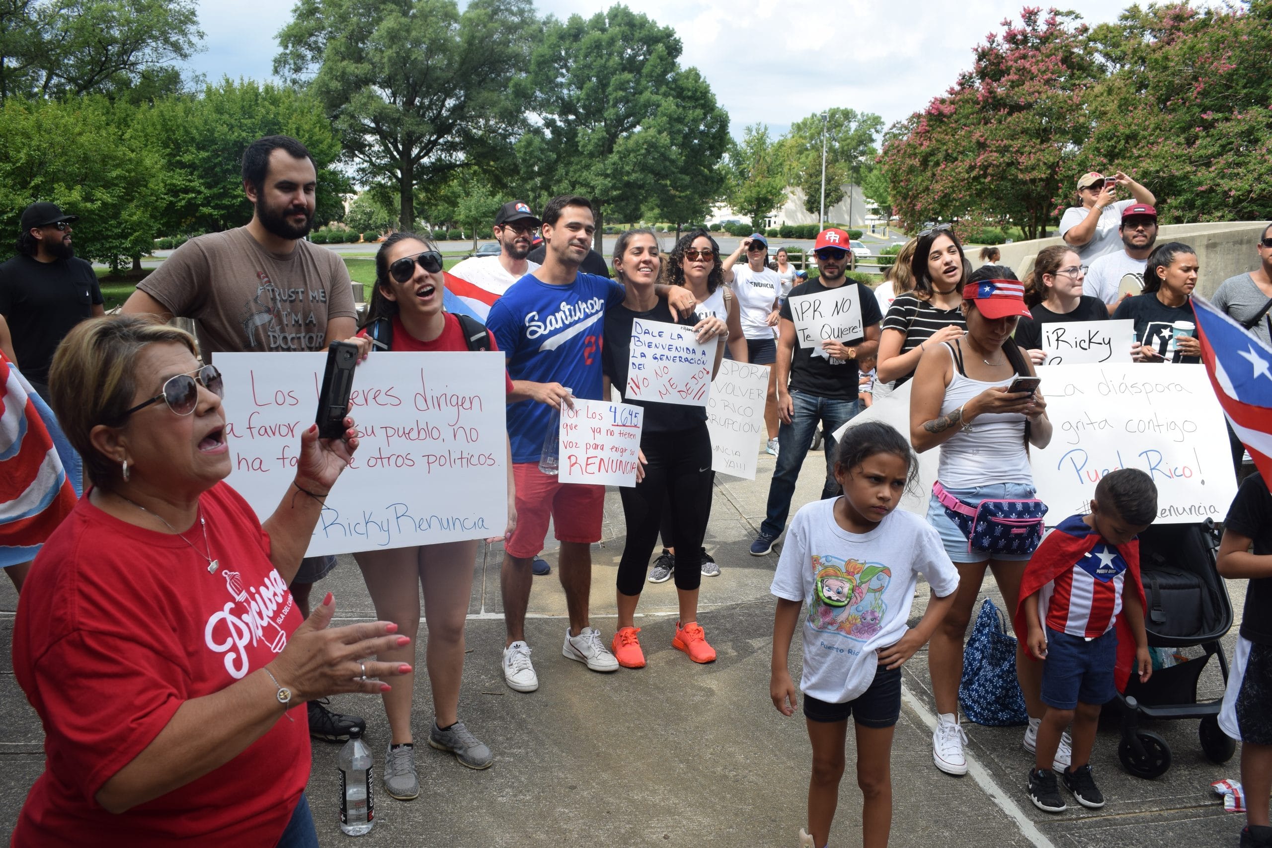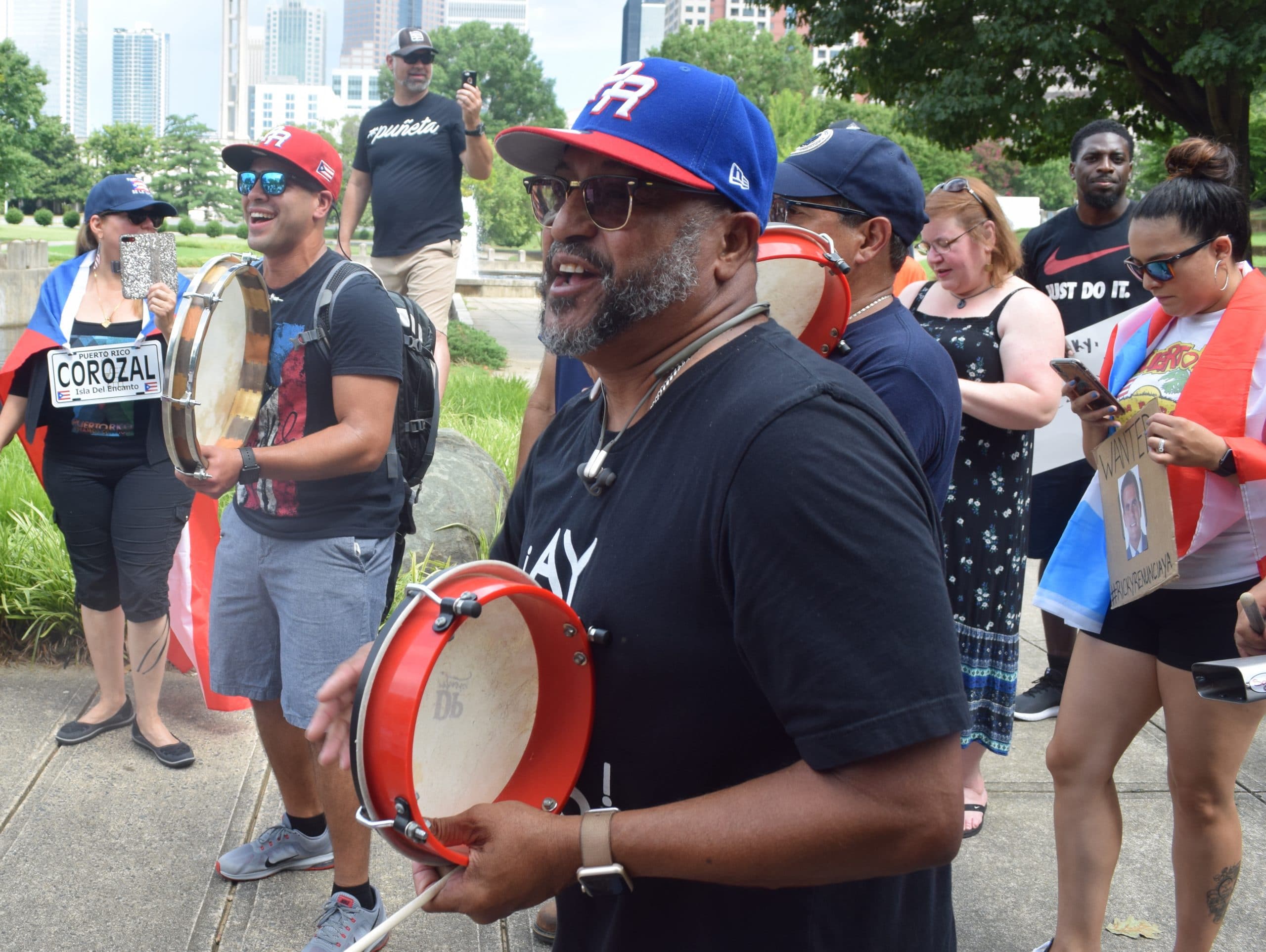 Con banderas, carteles e instrumentos musicales, la comunidad puertorriqueña de Charlotte se reunió la mañana del en el Marshall Park para exigir la renuncia del gobernador de Puerto Rico, Ricardo Rosselló.
