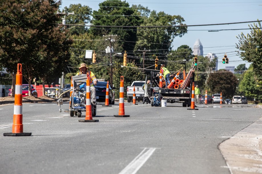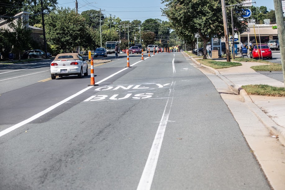 La ciudad de Charlotte (Carolina del Norte) está probando un nuevo carril de uso exclusivo para autobuses en Central Avenue, entre Eastway Drive y Eastland Transit Center.
