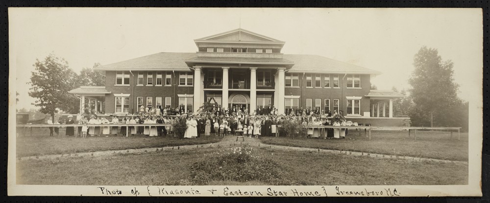 Fotografía de residentes y visitantes en el edificio principal de "Masonic and Eastern Star Home", un centro de atención de enfermería de estadía prolongada sin fines de lucro dirigido por los masones y la Orden de la Estrella del Este, 1920. (Imagen: The Grand Lodge of Ancient, Free and Accepted Masons of North Carolina)