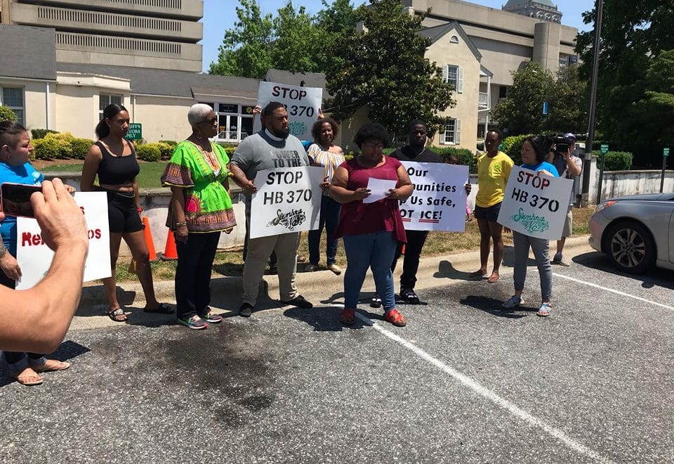 Cerca de 20 activistas afroamericanos y latinos de Greensboro y High Point, realizaron una manifestación frente a la Oficina del Alguacil del Condado de Guilford para preguntarle si se opone a un proyecto de ley que busca obligar a las agencias locales a colabora con Inmigración.