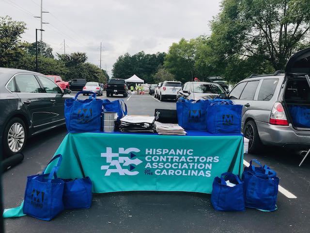 La Asociación de Contratistas Hispanos de las Carolinas realizó una jornada en Raleigh el para entregar a los trabajadores de la construcción equipo protector contra COVID-19 y material informativo de prevención.