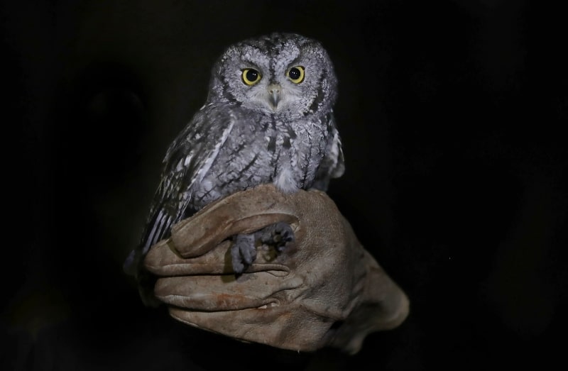 El investigador Rodrigo Medellín, del Instituto de Ecología de la UNAM, sostiene un búho mientras él y sus estudiantes atrapan y liberan pájaros en el campus como parte de un estudio de campo nocturno para identificar la especies que hay en el recinto universitario, en la Ciudad de México. (Foto: AP)