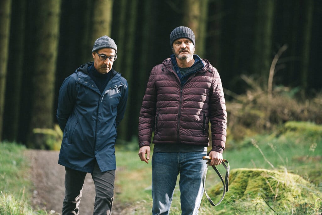 Frente a un Tusker asolado por la tristeza, Sam encarnado por Colin Firth se mantiene en el propósito de acompañar a su pareja a través de los duros tiempos que están por llegar para ambos.