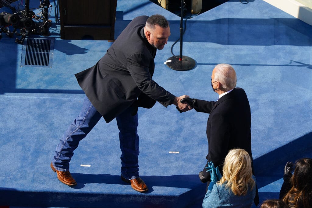 En la ceremonia de juramentación del presidente electo Biden y la vicepresidenta electa, Kamala Harris, Lady Gaga interpretó el himno nacional mientras que Garth Brooks cantó "Amazing Grace".