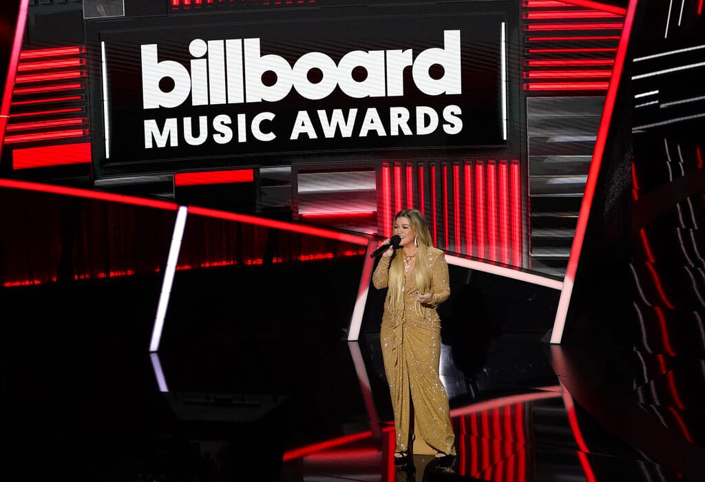 Kelly Clarkson canta en la ceremonia de los Premios Billboard de la Música, el miércoles 14 de octubre del 2020 en el Teatro Dolby en Los Ángeles. (AP Foto/Chris Pizzello)