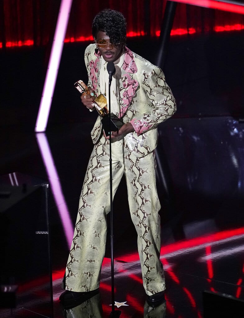 Lil Nas X recibe el premio a la mejor canción del Hot 100 por "Old Town Road" durante la ceremonia de los Premios Billboard de la Música, el miércoles 14 de octubre del 2020 en el Teatro Dolby en Los Ángeles. (AP Foto/Chris Pizzello)