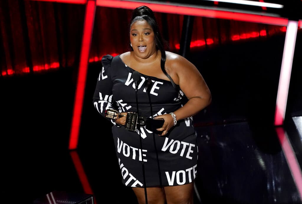 Lizzo recibe el premio "top song sales artist" durante la ceremonia de los Premios Billboard de la Música, el miércoles 14 de octubre del 2020 en el Teatro Dolby en Los Ángeles. (AP Foto/Chris Pizzello)