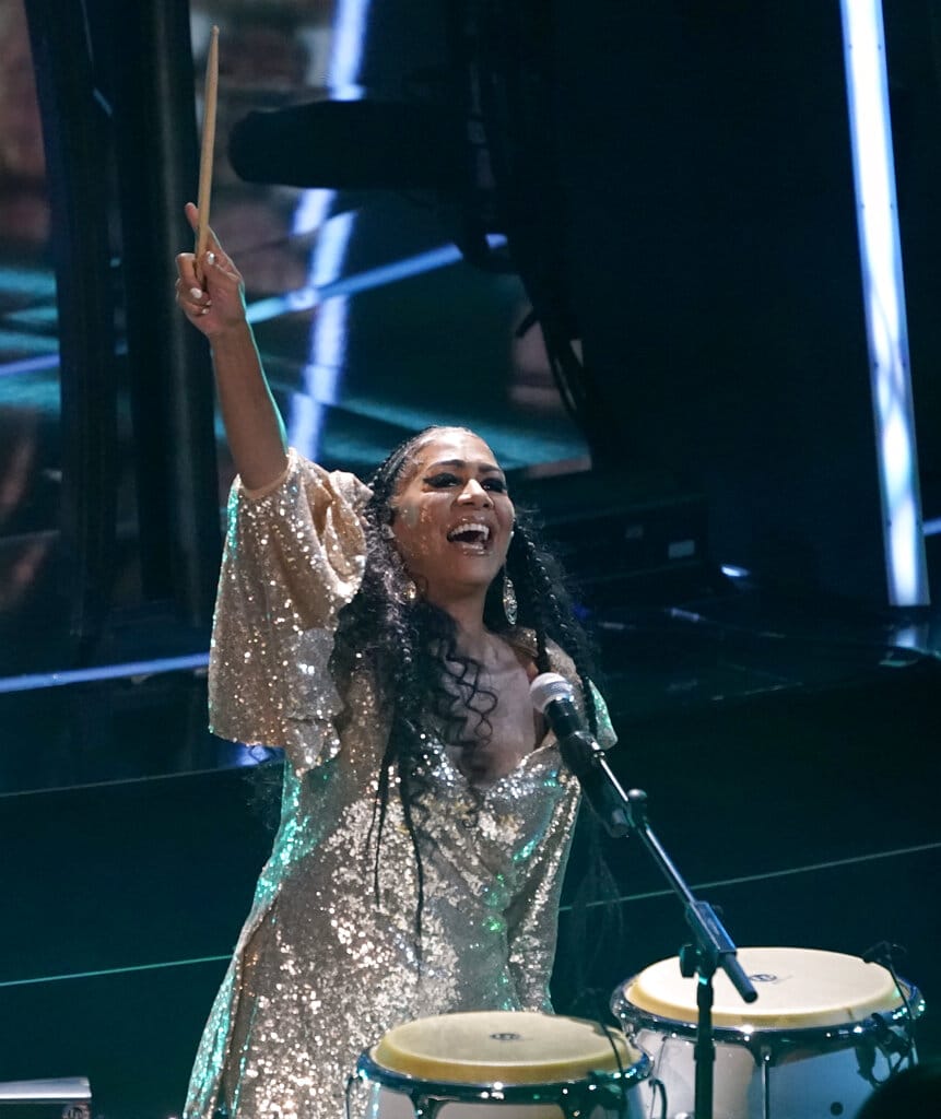 Sheila E. interpreta "Higher Love" en la ceremonia de los Premios Billboard de la Música, el miércoles 14 de octubre del 2020 en el Teatro Dolby en Los Ángeles. (AP Foto/Chris Pizzello)
