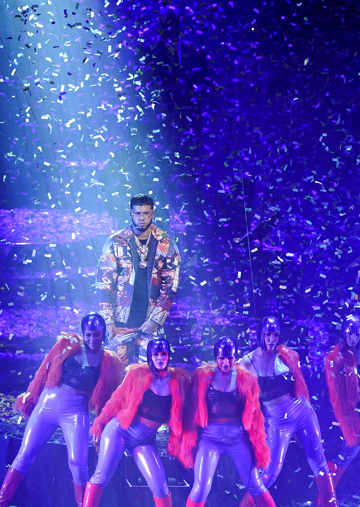 Anuel AA durante su presentación en la 21a entrega anual del Latin Grammy el jueves 19 de noviembre de 2020 en la Arena American Airlines en Miami. (Foto AP/Marta Lavandier)