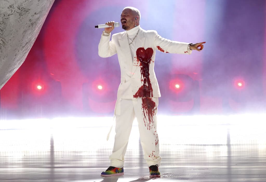 J Balvin durante su presentación en la 21a entrega anual del Latin Grammy el jueves 19 de noviembre de 2020 en la Arena American Airlines en Miami. (Foto AP/Taimy Alvarez)