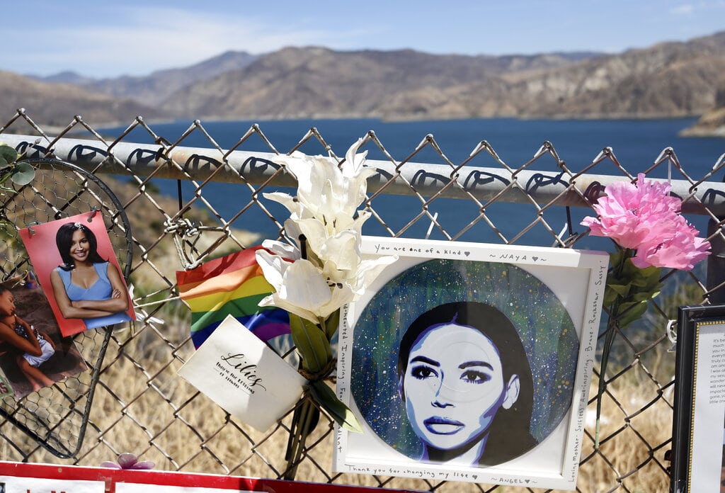 Un memorial improvisado para la difunta Naya Rivera junto al lago Piru, en el bosque nacional Los Padres, California, el 3 de agosto del 2020. La actriz de 33 años, conocida por su trabajo en la serie "Glee", fue hallada muerta en el lago el 13 de julio, cinco días después de que su hijo Josey fue encontrado solo en un bote que habían alquilado. (AP Foto/Chris Pizzello)