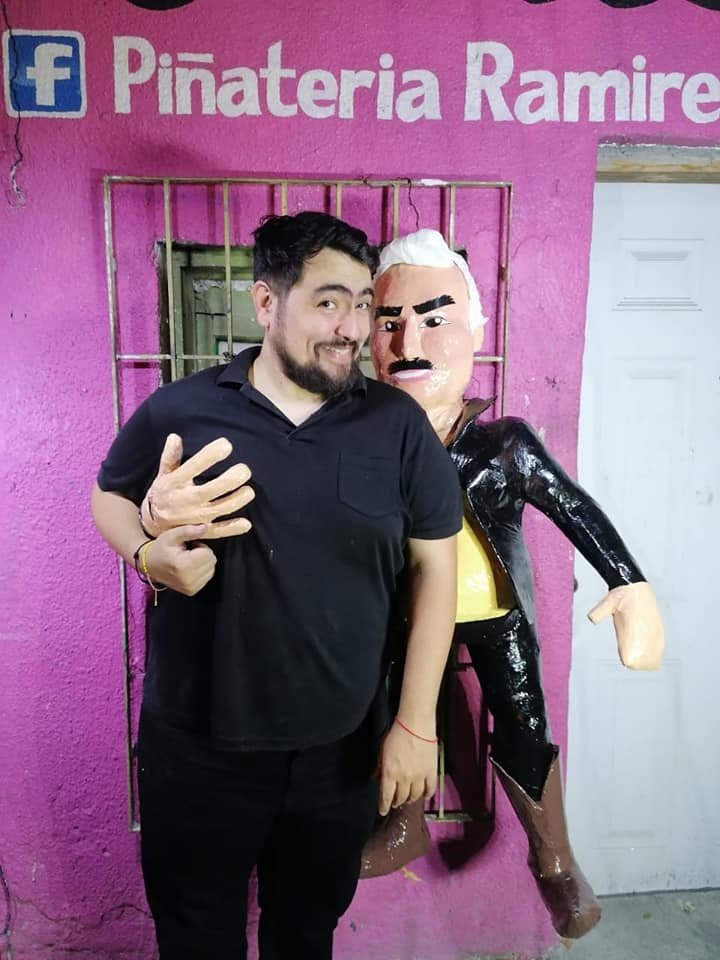 De acuerdo con la página de Facebook del negocio, la piñata se llama "Chente mano larga" y, como su nombre lo indica, tiene un brazo más alargado que el otro para que las personas se puedan poner al lado de la figura.